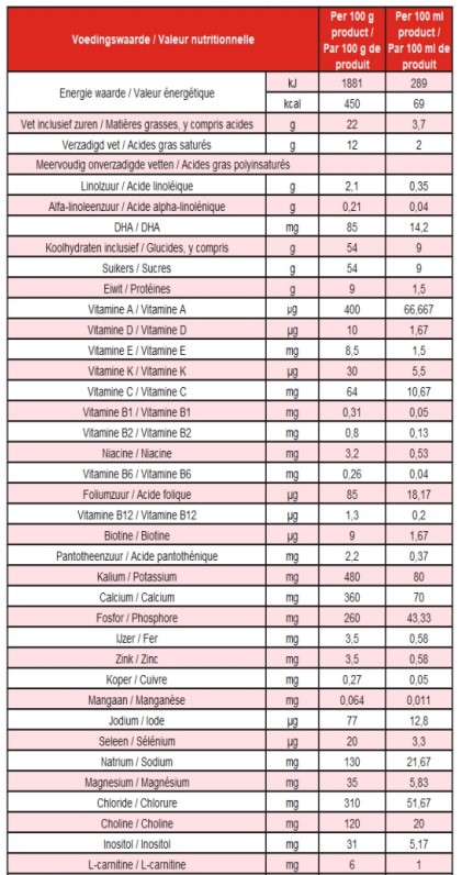 De verpakking bevat 900 gram product. Het maatschepje zit in de verpakking.